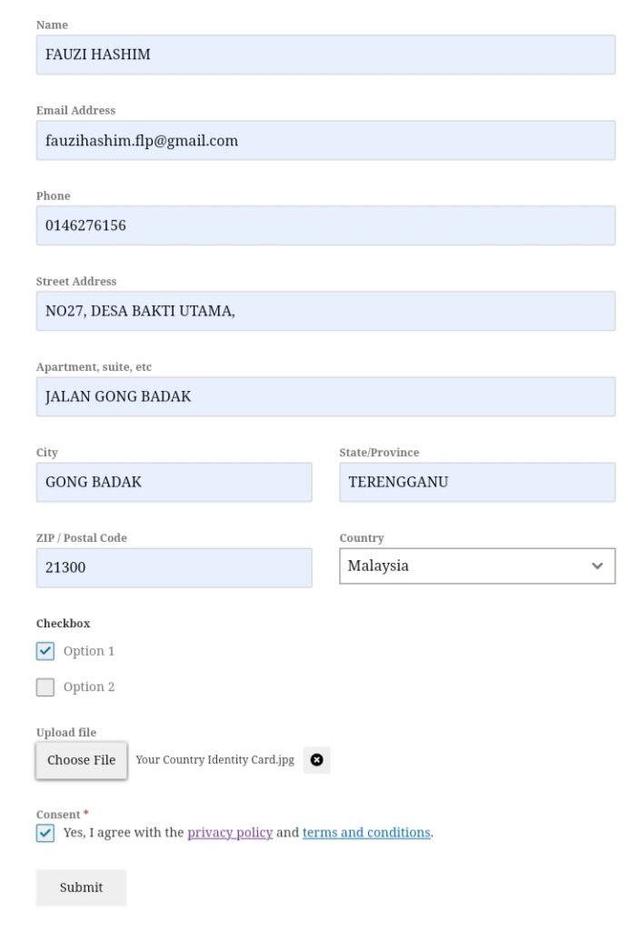 After you have completed all required information and successfully uploaded the necessary documents, click Submit to send the information.